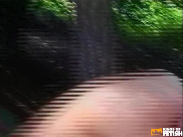 Muscular man gets rough anal fuck from a tattooed shemale outside