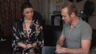 Angelina Mylee is the masseuse on call when Brandon knocks on the door. Brandon is a virgin and his friends recommend Nuru to pop his cherry. Angelina is so turned on at the prospect that she opens her robe up for him before they even make it upstairs to the massage room. She really has to work at loosening Brandon up, as he wears his boxers into the shower because he is so shy. As he starts to harden Angelina gently works him under his briefs. She goes slow and is the perfect teacher, gently sucking him hard with her mouth. She gives Brandon plenty of eye contact to give him the intimacy he so desperately wants. Watch as she cups his cock and balls from behind, stroking him off in the shower. She has to stop so he doesn't pop as she moves him into the tub, giving him permission to touch her as well. When they hit the massage table, Angelina lubes him up using her whole body. Her tits and pussy glide effortless up and down his shaft thanks to the special Nuru oil she used. Angelina lets Brandon lick her pussy as she sucks him off for his happy ending.