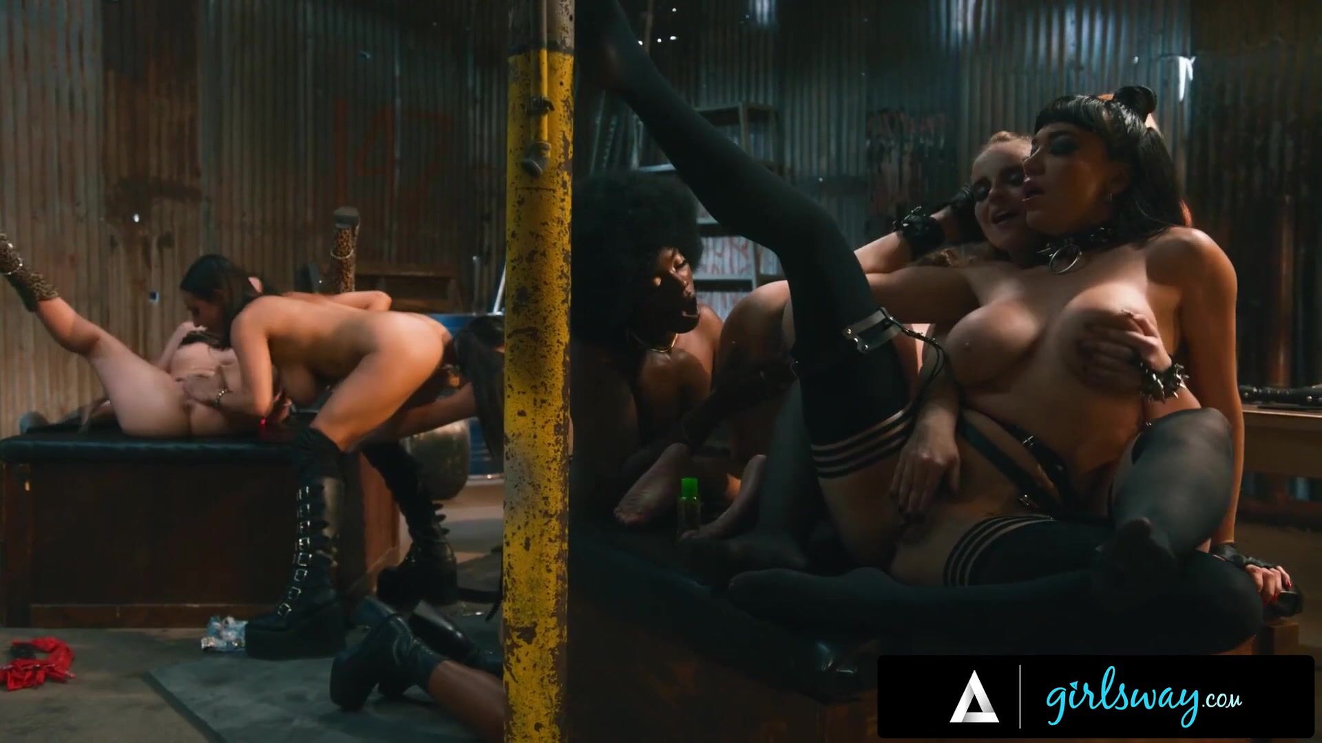 Dirty Babes have Wild Rough Orgy in Abandoned Factory! Strap-on, Fingering, &
